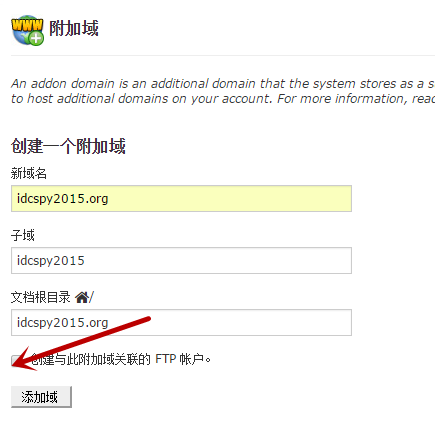 4. 如果您需要为域名创建关联FTP,勾选上面的小框,设置自己的密码就可以了,如果还想加强密码就可以使用密码生成器。